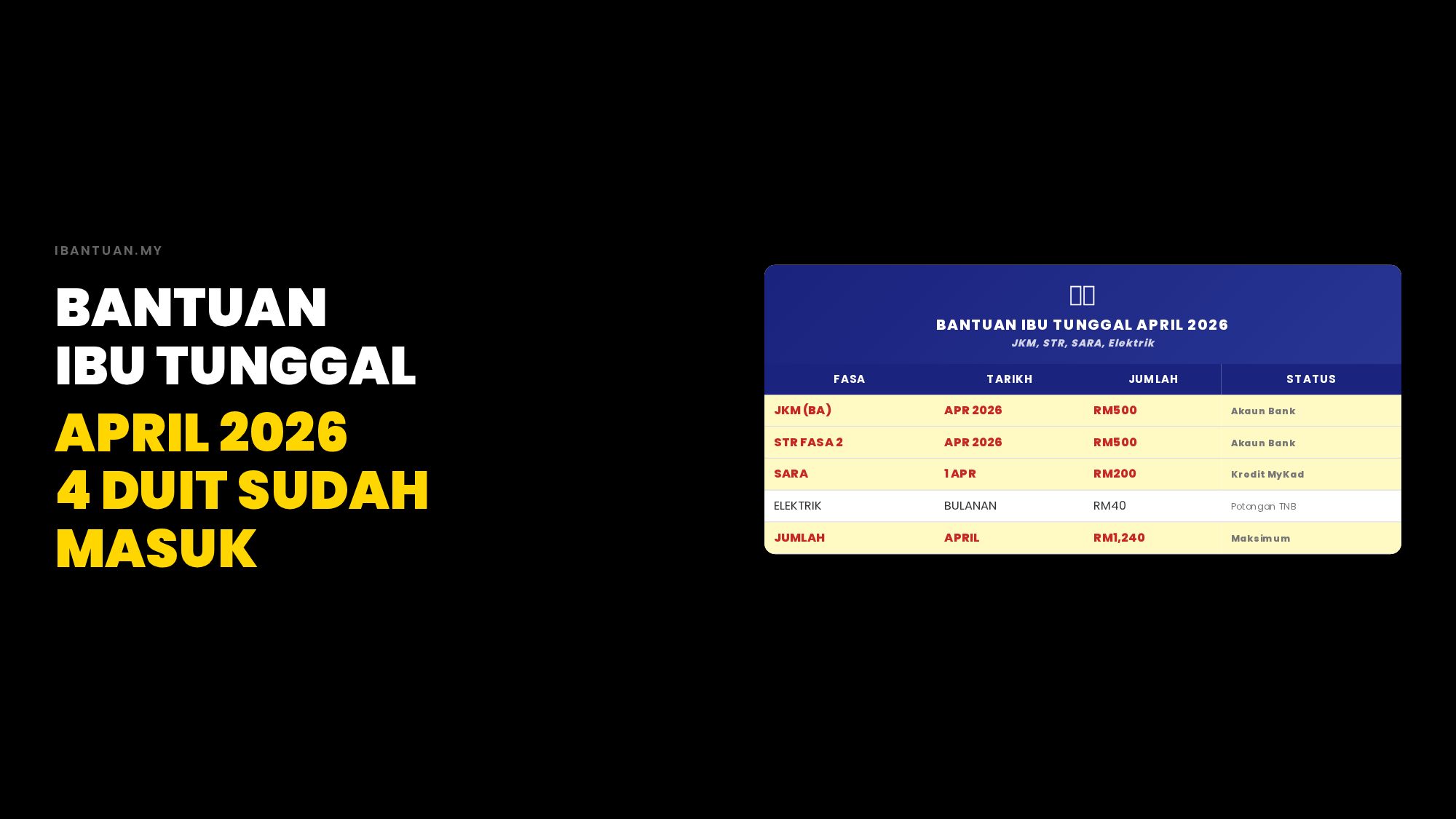 Berikut adalah senarai bantuan yang sudah atau sedang dikreditkan kepada ibu tunggal dan suri rumah yang layak pada bulan April 2026:
