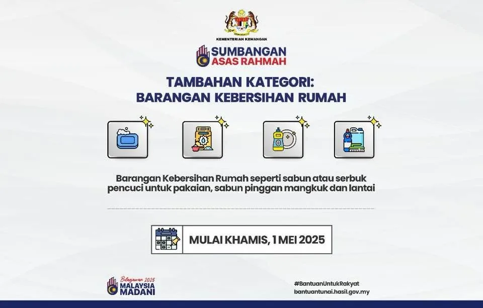 Kategori baharu ini merangkumi barangan seperti sabun pencuci pakaian, sabun pencuci pinggan mangkuk, dan serbuk pencuci lantai, yang kini boleh dibeli oleh penerima melalui MyKad.