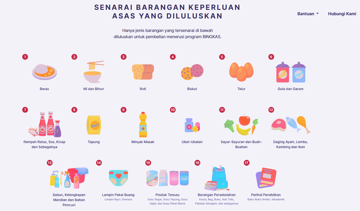 Apakah barangan yang boleh dibeli dengan bantuan Bingkas Selangor?