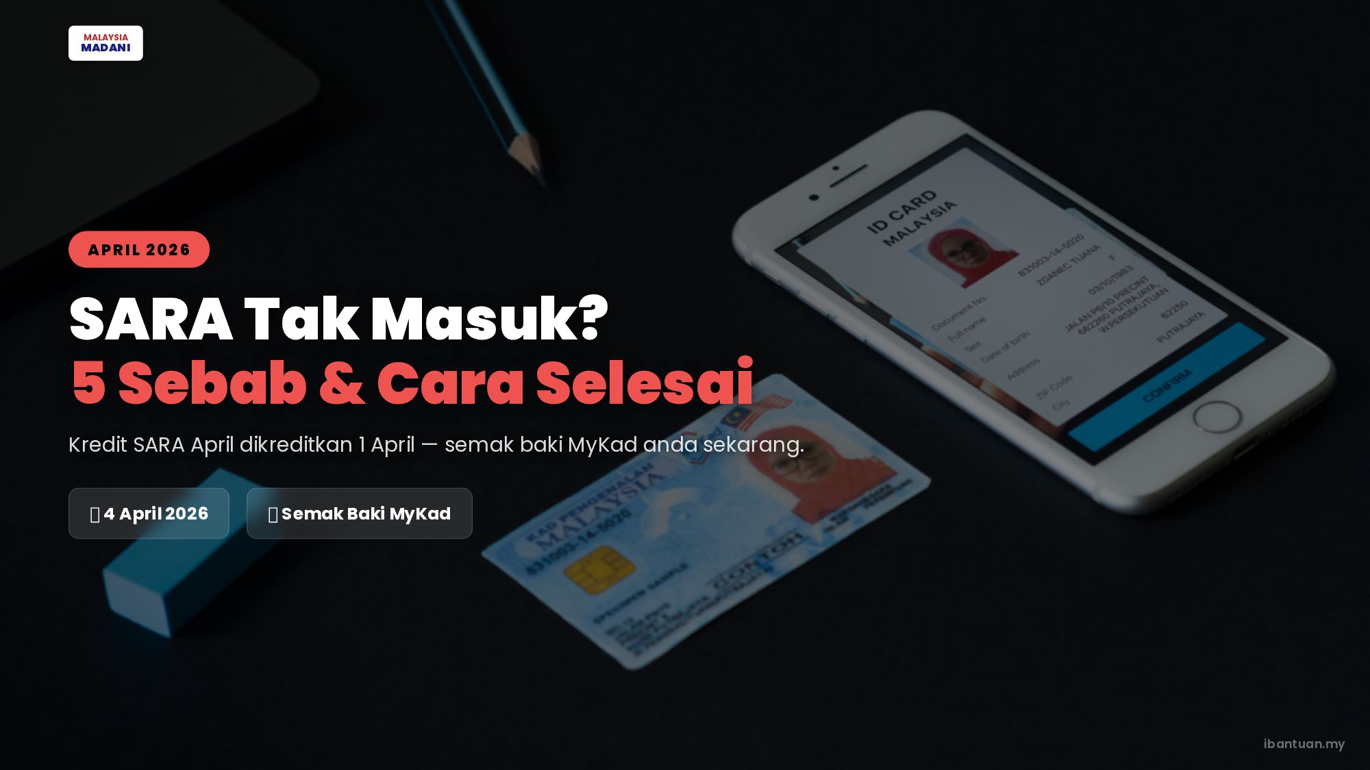 Dikemaskini pada 4 April 2026 — Kredit SARA April 2026 telah dikreditkan ke MyKad pada 1 April 2026. Namun, ada penerima yang mendapati baki SARA mereka masih tidak bertambah. Jika anda salah seorang daripada mereka, jangan panik — berikut adalah 5 sebab biasa mengapa SARA tak masuk dan cara menyelesaikannya.