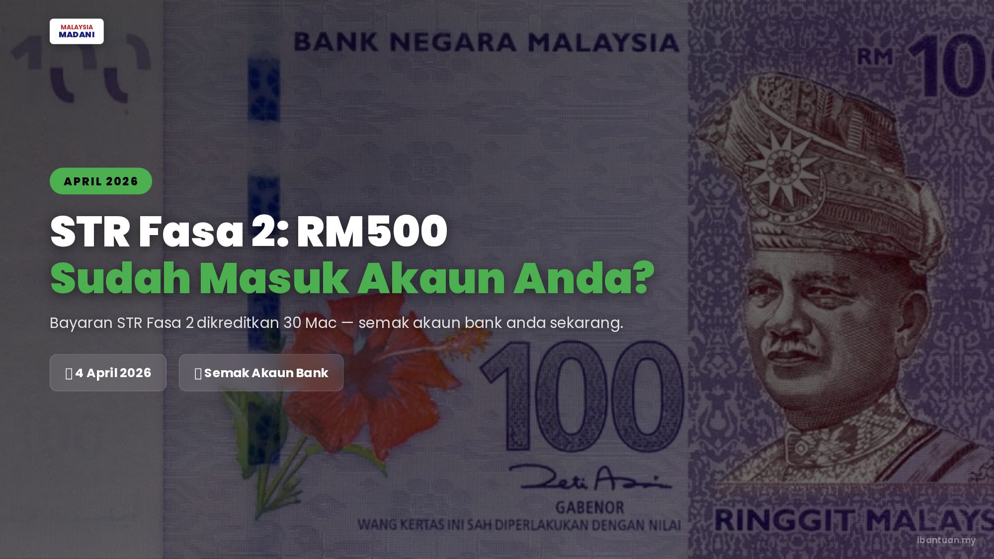 Dikemaskini pada 4 April 2026 — Bayaran Sumbangan Tunai Rahmah (STR) Fasa 2 untuk pemohon baharu telah dikreditkan pada 30 Mac 2026. Jika anda baru diluluskan, duit sepatutnya sudah masuk ke akaun bank anda. Belum terima? Semak status dan jumlah bayaran anda sekarang.